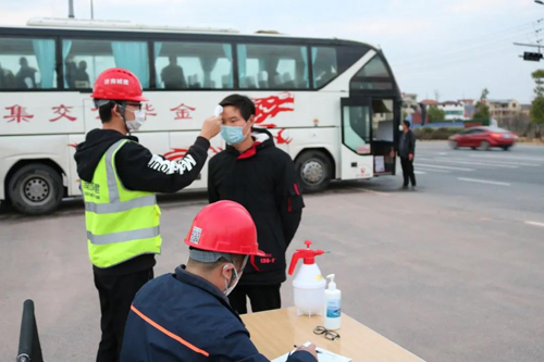為緩解當前復(fù)工用工緊張局面,確保工人安心返崗,濟南城建集團第二分公司金華項目部決定采用包車接工人返金華。通過“點對點一站式直達”方式跨省包車,保障新進員工安全到崗,所有務(wù)工人員出示身份證明、健康登記證明和返崗?fù)ㄖ凑找蝗艘慌乓蛔拈g距要求就座。同時,項目部接待、住宿、消殺等準備工作已按部就班、有條不紊的進行,2月25日,第一批四川省廣安市鄰水縣的20位工友,乘坐由四川省廣安市鄰水縣出發(fā)的大巴抵達金義東市域軌道交通項目土建11標項目部。